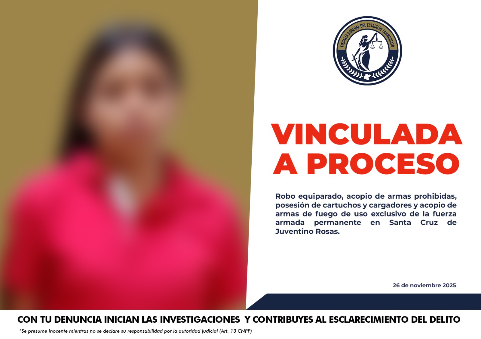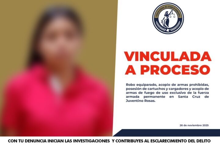 Juventino Rosas, Gto., viernes 28 de noviembre del 2025. Fue vinculada a proceso la mujer de nombre Jazmín ‘N’, la...