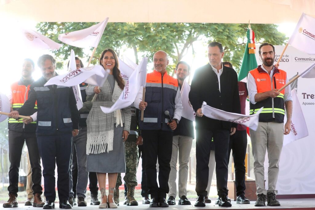 Apaseo el Grande, Gto., jueves 18 de septiembre del 2025. La mañana de este jueves desde la antigua estación del tren de Apaseo el Grande, y a través de un enlace en vivo de la gobernadora de Guanajuato, Libia Denisse y el gobernador de Querétaro, Mauricio Kuri, con la presidenta Claudia Sheinbaum en la “mañanera” de Palacio Nacional, se dio el arranque de la obra del tren de pasajeros en el tramo de Querétaro hacia este municipio guanajuatense.