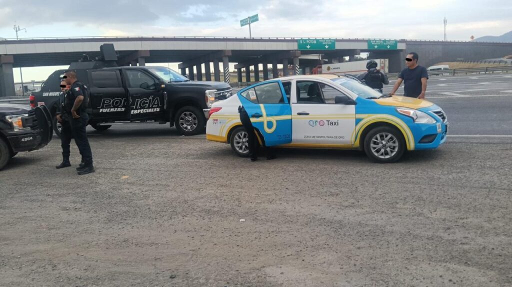 Posteriormente, se detectó que este sospechoso descendió de dicha unidad y abordó otro taxi del estado de Querétaro, el cual también fue asegurado.